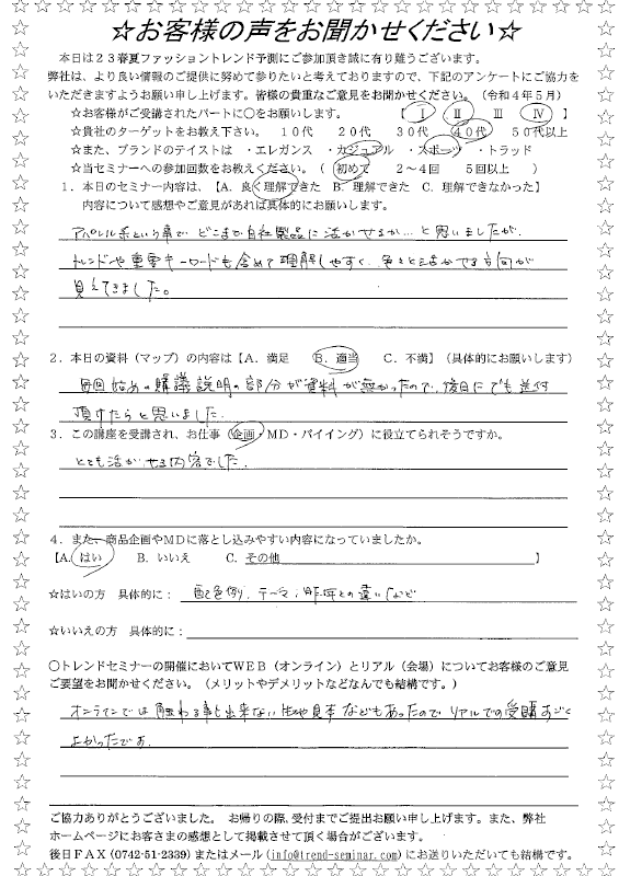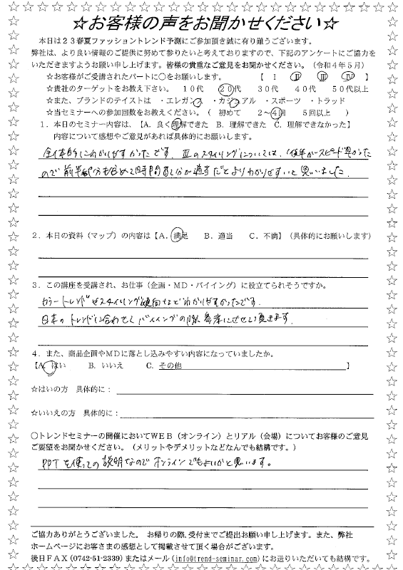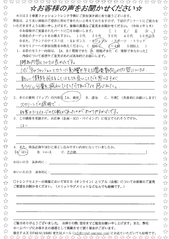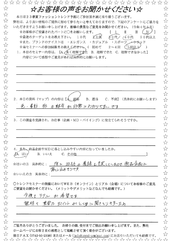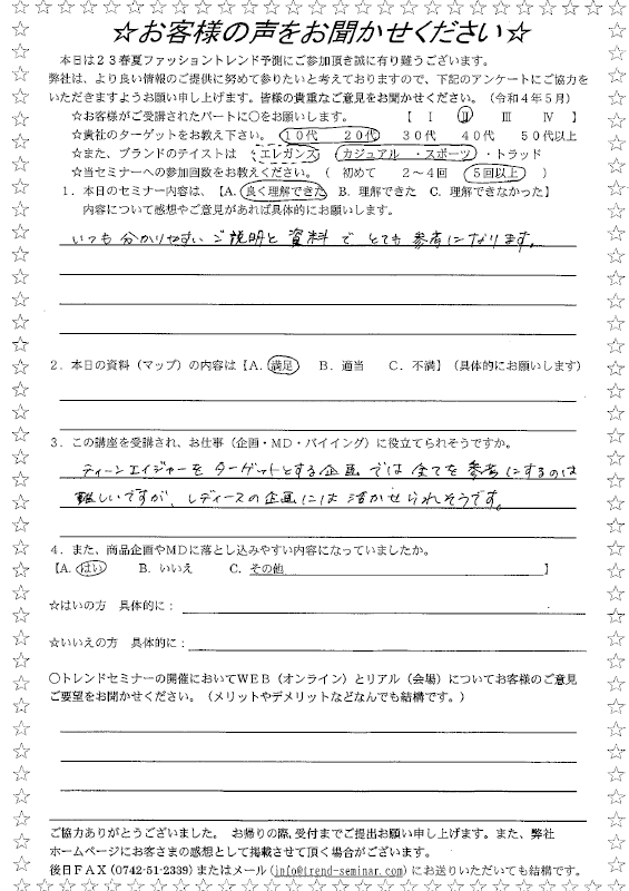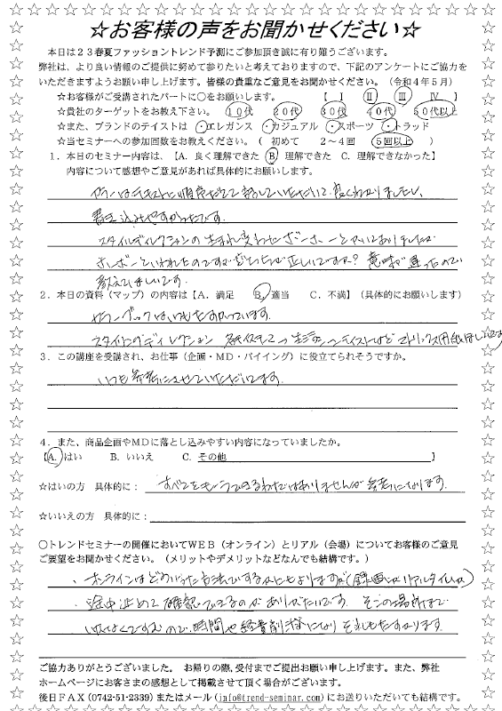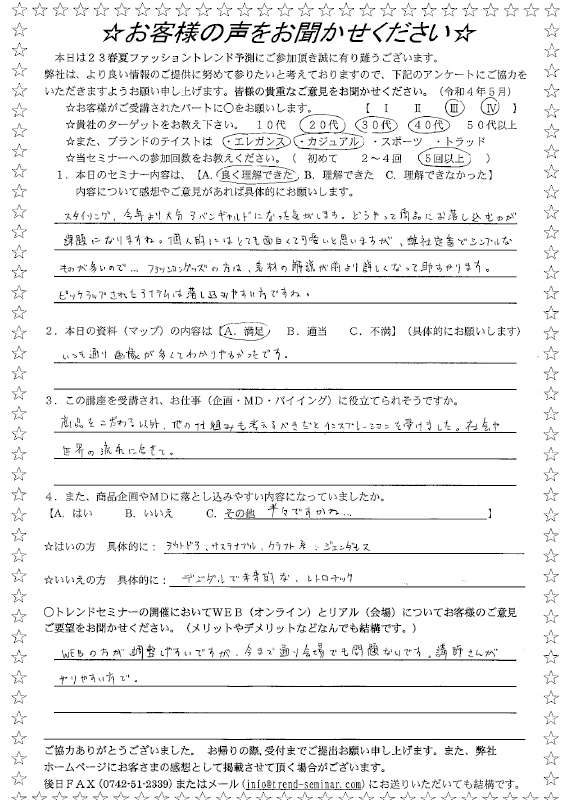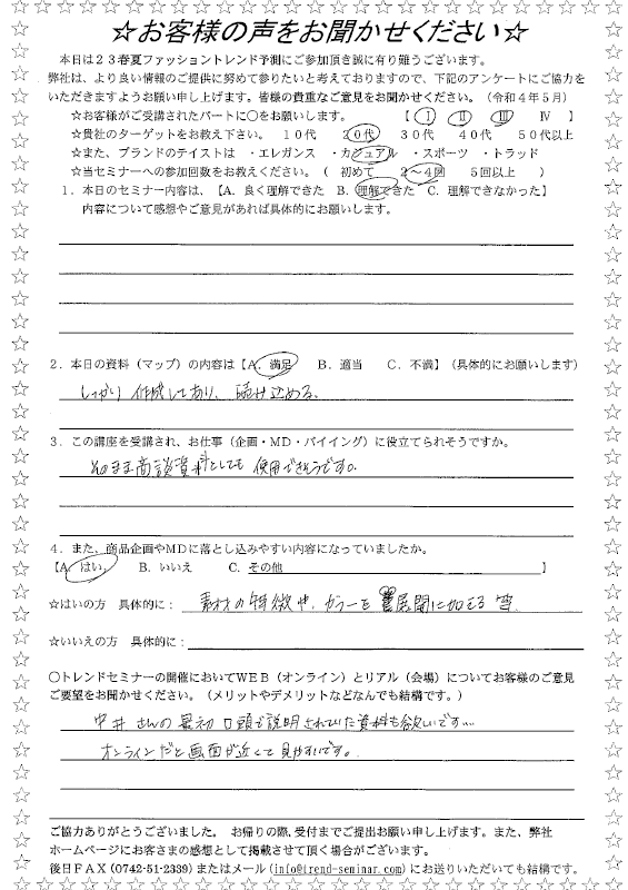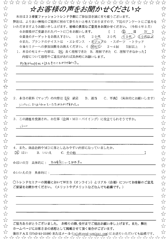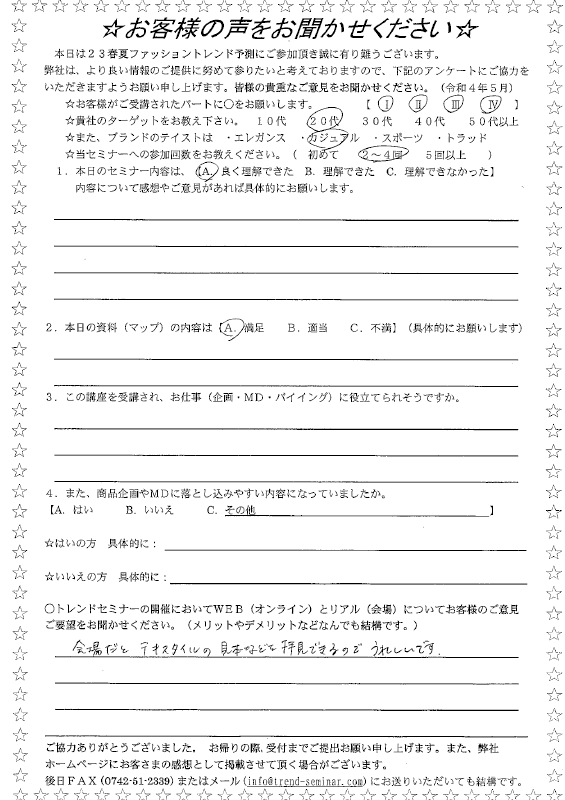当セミナーを受講した方が記入したアンケートをご覧頂けます。(サムネイル画像をクリックして詳細をご覧下さい)